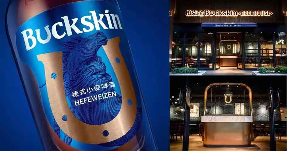 以BUCKSKIN字母「U」來詮釋品牌特色轉(zhuǎn)換成馬蹄鐵造型代表極致的制酒工藝也象征滿溢絕妙風味的酒杯,